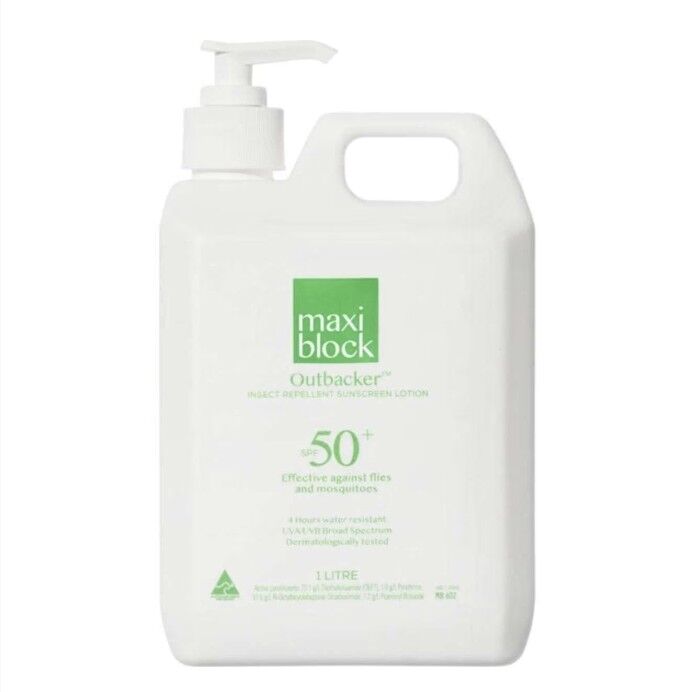 Maxiblock Outbacker in a SPF50+ sunscreen with insect repellent for when you need protection from the sun and from insects such as flies or mosquitoes. This formula combines