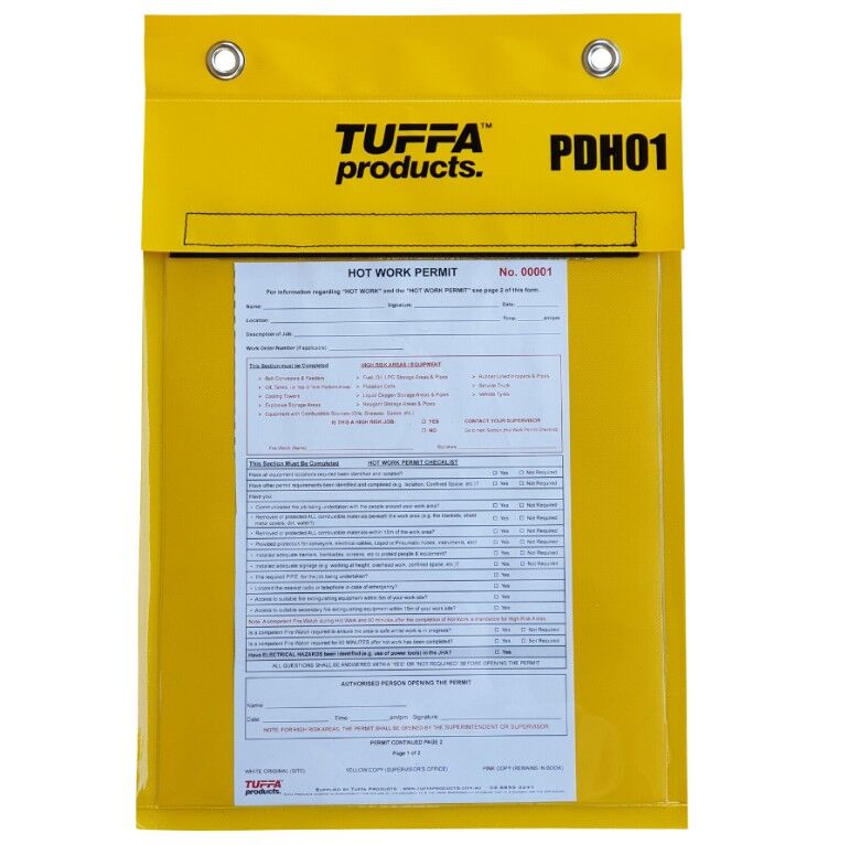 Protect your Work Permits and other important documentation from the weather with TUFFA™ Products Waterproof Permit Document Holder. Made from 0.4mm reinforced tarp material with 1mm UV clear PVC front with 2 x heavy duty 10mm eyelets. Sized to suit A4 Documents. Waterproof for outdoor use with a sewn velcro strip for extra strength. Proudly Australian Made.